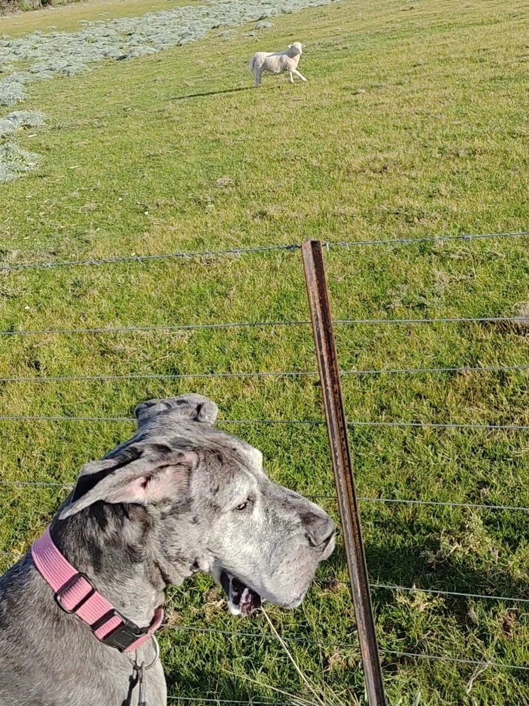 Chilli on an assessment walk with me, watching teenagers play soccer